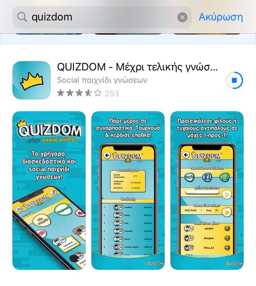Ένα app που θα λατρέψετε εσείς και η παρέα σας είναι το quizodom, στο οποίο μπορείτε να επιλέγετε κατηγορίες που σας ενδιαφέρουν και να συναγωνίζεστε τους συμπαίκτες σας ! Πρόκειται για διασκέδαση και γνώση που θα οδηγήσει σε εθισμό! download now…..